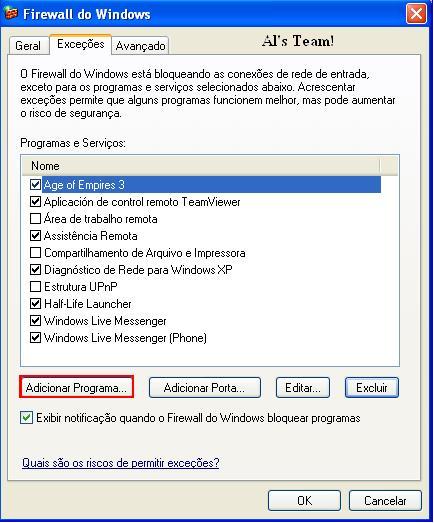 4-Depois de clicado em "Exceções" você clica em Adicionar Programa: