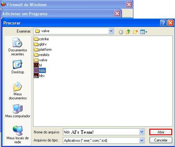6-Neste procurar que você está, va até sua pasta valve, e ache o HLDS e clique em Abrir, foto:
