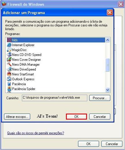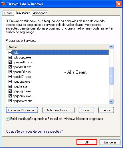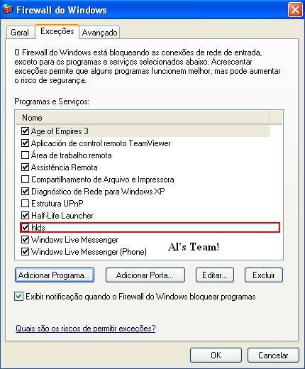 8-Depois que você clicou em "OK", o hlds irá aparecer na lista de exceções, foto: