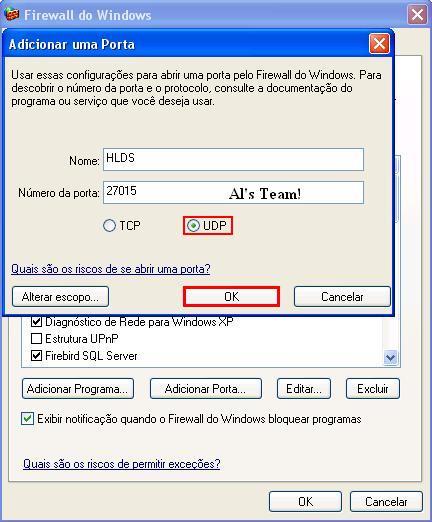 Nome: É o nome que você irá colocar para liberar a porta, não faz muita diferença, mas coloque HLDS.